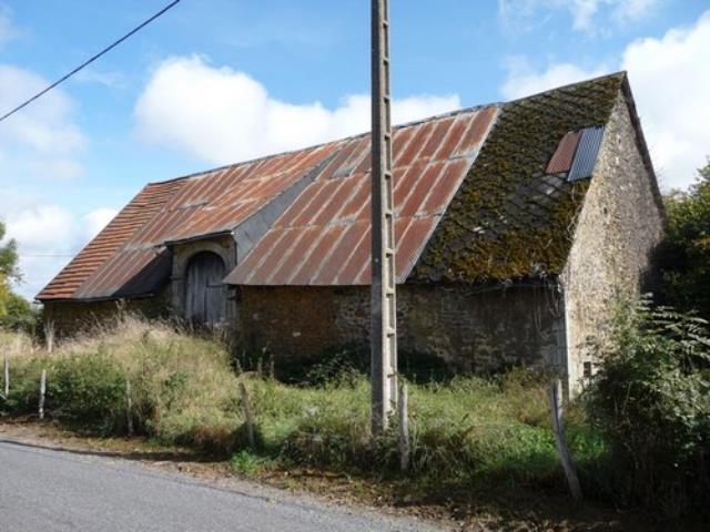 Jolie grange en pierres couverte en tôles de 24 x 11 m sur 2 niveaux avec eau et électricité tout à l’égout passe devant la grange terrain 1141 m²