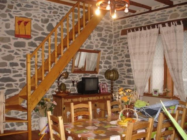 Maison en pierres couverte en ardoises comprenant: -S/S: cave et chaufferie C/C fuel R/C: une cuisine aménagée avec accès terrasse , une salle à manger, un salon avec cantou, une chambre, une salle d’eau, un wc 1er étage/ 3 chambres, salle de bain, douche et wc 2éme étage/ 2 appartements refaits à neuf :un f1 et un F3 Petit terrain Dépendances/ une remise et un garage accolés à la maison